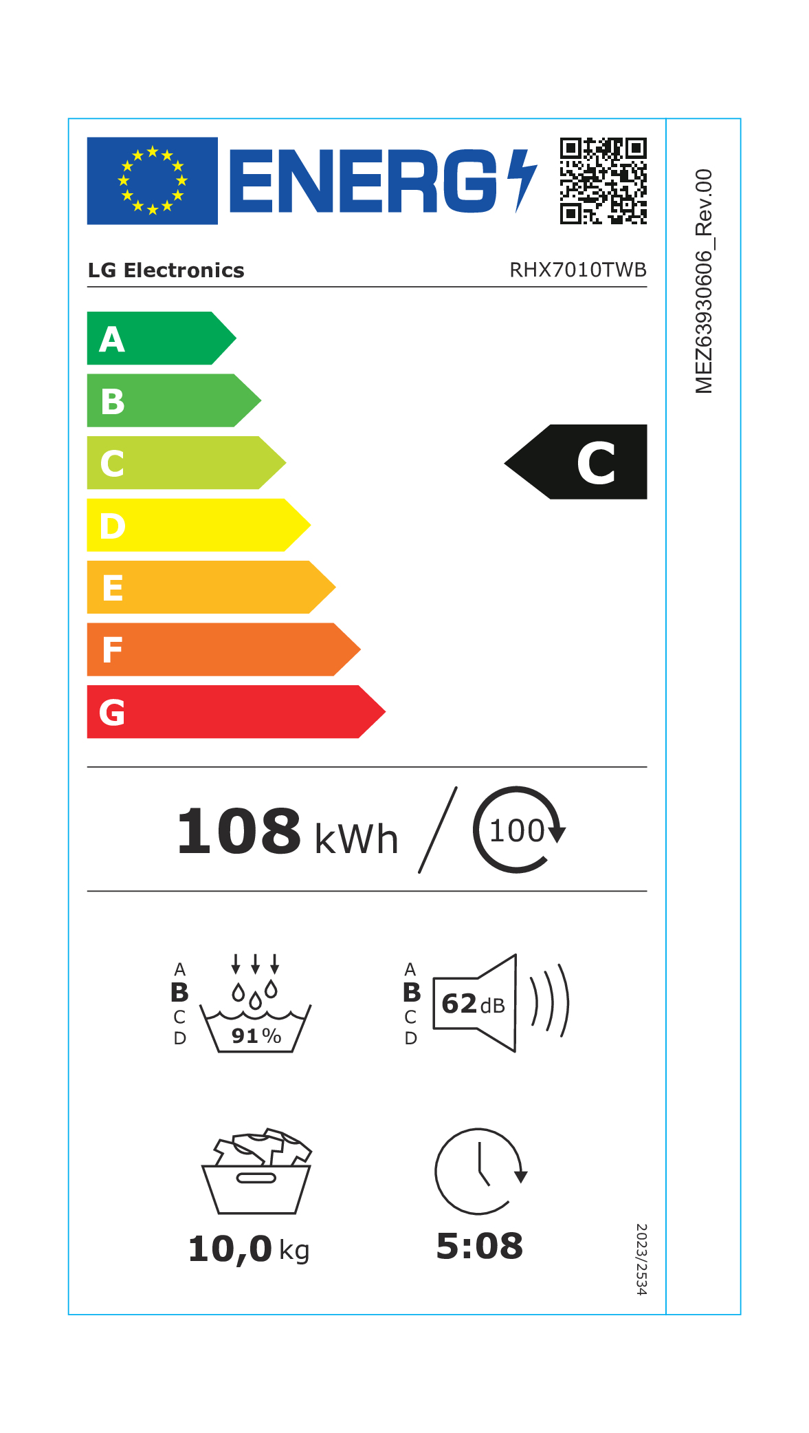 - Consumo energetico per 100 cicli: 108