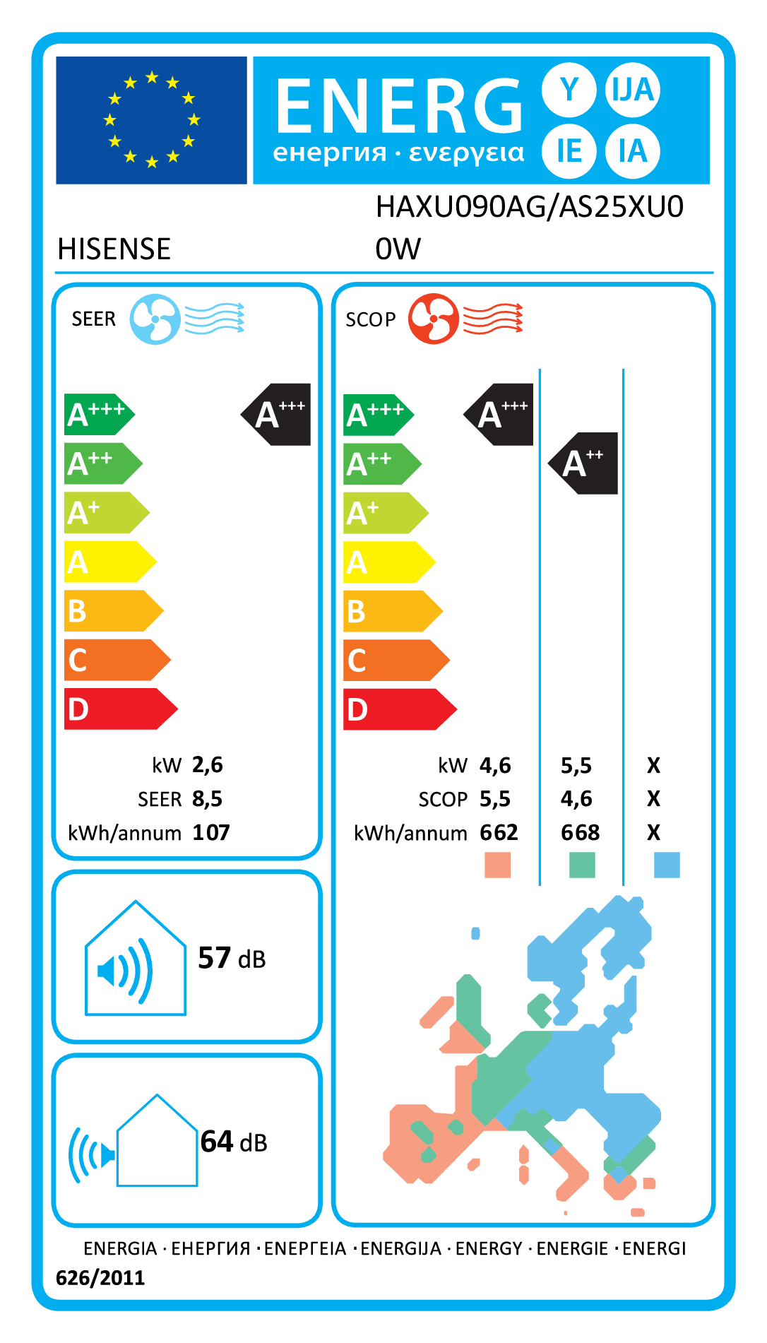 - Classe di efficienza energetica (raffreddamento): A+++